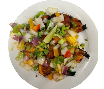 | Spicy, savory chicken stir-fried with bell peppers & sauce. | ||